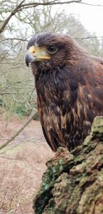 We’ve been busy at the Centre with our Harris Hawks over the festive period. I (Lisa), have a couple of young males that I’m working with to get them ready to join our team for Hawk Walks with our clients. Steve has been training new girl Jazz, as well as getting Amber our most experienced female, ready to join the boys in the remaining Hunting Experiences for the season. My males, Eivin and Mouse have been doing really well and succeeded in catching a teal over the Christmas break. This means that Eivin is now ‘entered’ which means that he has had his first successful attempt at catching wild quarry. Mouse isn’t far behind him and we are expecting success over the coming days. It’s important that our birds are fit enough to sustain a 90 minute experience so this means time out with them in the field – which also means that we keep fit too! Steve and I have been out most days at our most popular Hawk Walk experience locations, Hawkstone Park Follies and Soulton Hall. Harris Hawks work together in the wild to catch food as family groups or ‘casts’, this means that we can fly our birds in groups too. Current pairings are Milo and Stan, (soon to be joined by Amber) and Mouse and Eivin who will be debuting on experiences in early February. Why not book a Hawk Walk and come and see them in action for yourself? Hawk Walks take place all year round, call us or email to find out more.
